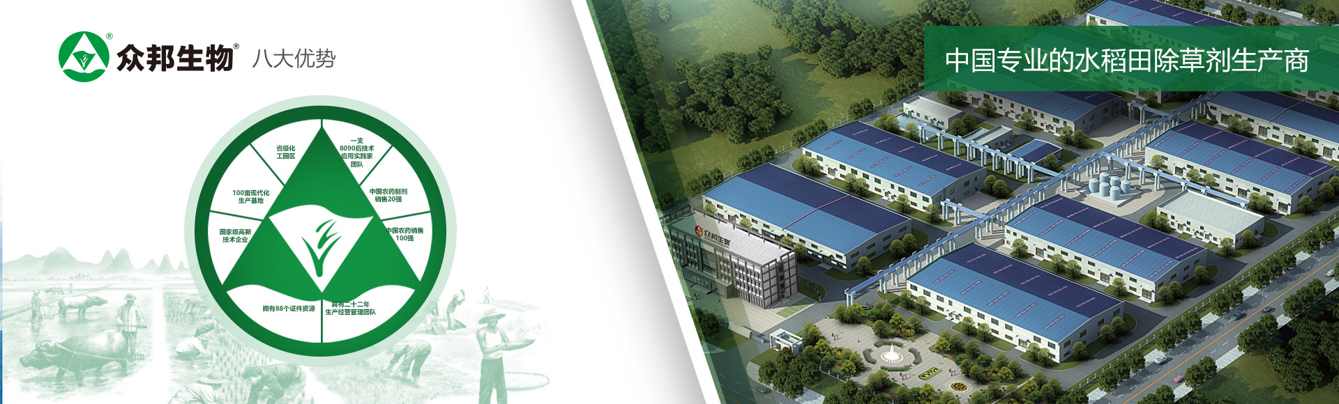 安徽眾邦生物工程有限公司成立于1997年12月。公司以新型生物農(nóng)藥為主導,兼顧生化復配和化學復配劑型農(nóng)藥研發(fā)、生產(chǎn)、銷售與應用技術(shù)服務。